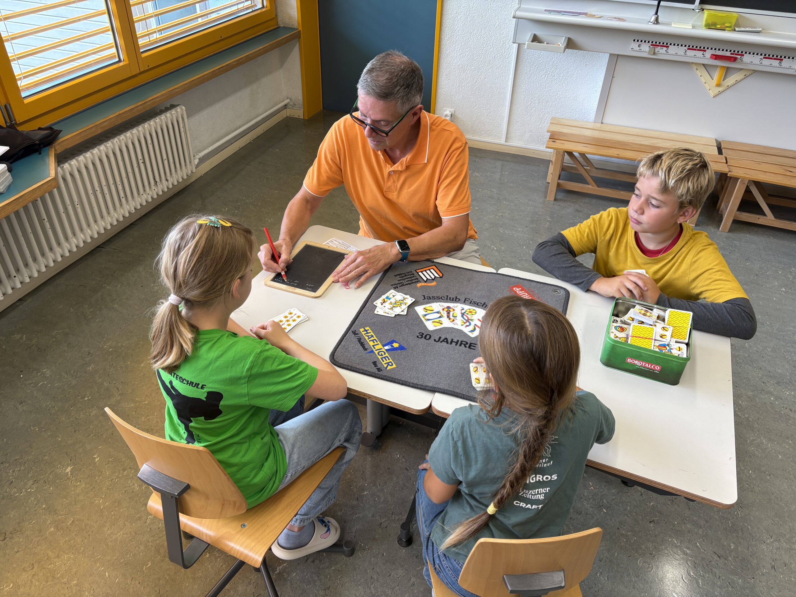 Bereits zum zweiten Mal durften wir vom Wissen von fünf Jass-Profis des Jassclubs Fischbach profitieren. Die Kinder freuten sich sehr, da sie den ersten Nachmittag im Vorjahr in bester Erinnerung hatten.